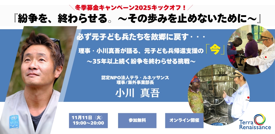 この冬、私たちが始める新たな挑戦の第一歩を、そして「紛争を終わらせる」という私たちの覚悟を、ぜひあなたに直接お伝えさせてください。