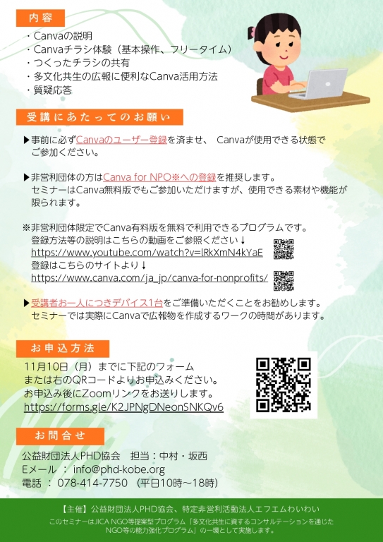 『Canvaを学んで広報活動を広げる~多文化共生分野で活動する団体向けセミナー~』を開催します。