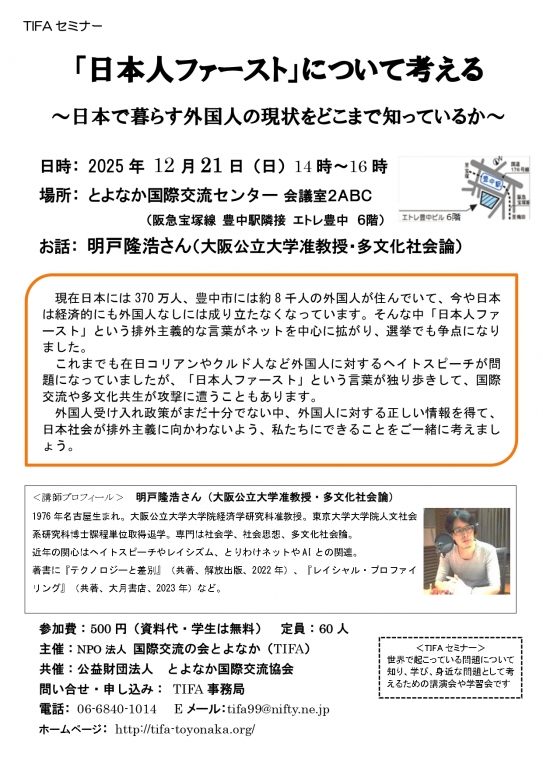 TIFAセミナー「日本人ファーストについて考える」