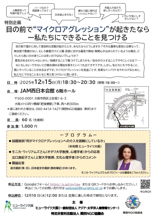 主 催:ヒューライツ大阪(一般財団法人アジア・太平洋人権情報センター)、特定非営利活動法人関西NGO協議会